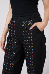 - Multi-Colored eyelet embellishments