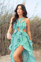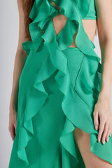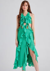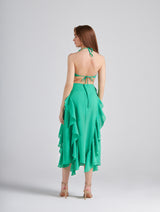 Model is: 173cm, Waist: 63cm, Hips: 89cm and is wearing a size x-small