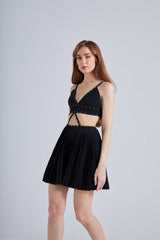 Model is: 173cm, Waist: 63cm, Hips: 89cm and is wearing a size x-small