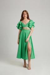 - Model is: 173cm, Waist: 63cm, Hips: 90cm and is wearing a size X-small