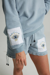 Silver eyelets with rope