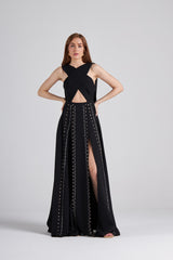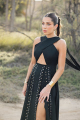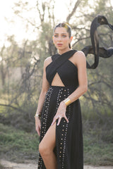 Model is: 173 cm, Waist: 63cm, Hips: 89cm and is wearing a size x-small