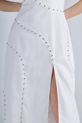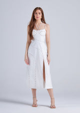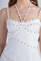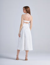Model is: 173cm, Waist: 63cm, Hips: 89cm and is wearing a size x-small