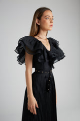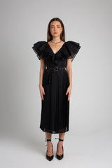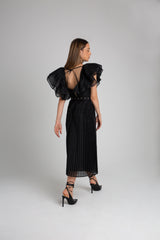 Model is: Height: 172cm, Waist: 63cm, Hips: 89cm and is wearing a size X-small